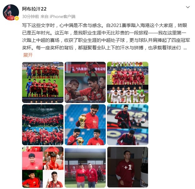 1月9日讯 结束2025赛季,阿布拉汗与上海海港的合约也将到期。通过个人微博,阿布拉汗向上海海港正式告别。有消息表示,他有望回归老东家河南队。